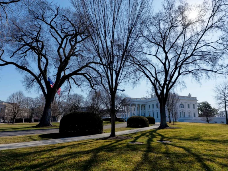 The White House is seen Sunday March 1, 2026, in Washington, ahead of the arrival of President Donald Trump. (AP Photo/Jose Luis Magana)