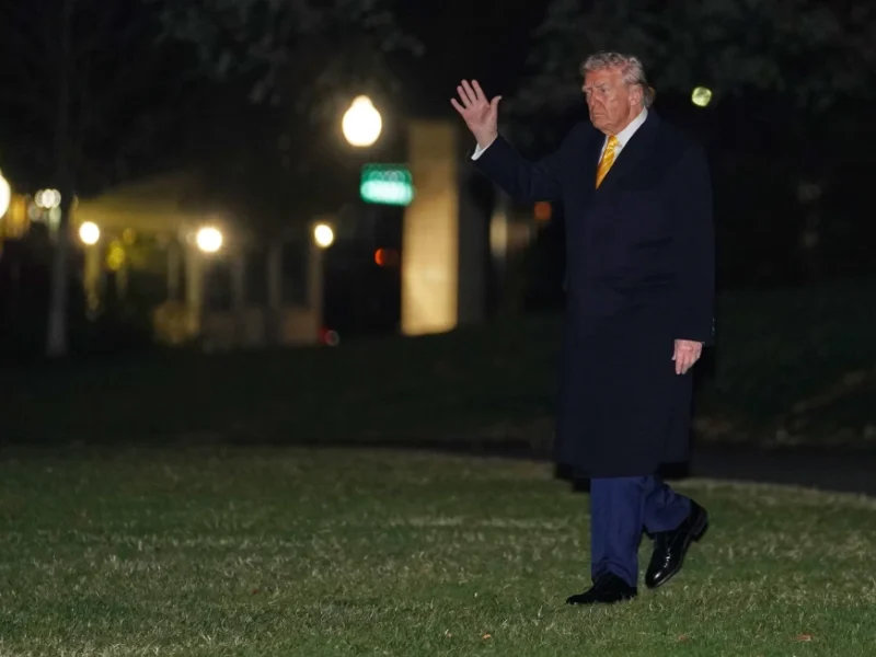 President Donald Trump waves as he walks to board Marine One, Friday, Nov. 14, 2025, on the South Lawn of the White House, in Washington for a trip to Palm Beach, Fla. (AP Photo/Allison Robbert)