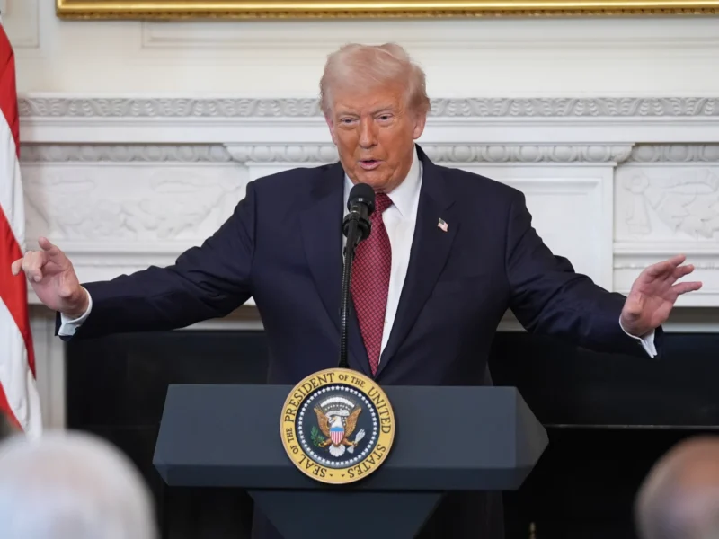President Donald Trump speaks during a breakfast with Senate and House Republicans in the State Dining Room of the White House, Wednesday, Nov. 5, 2025, in Washington. (AP Photo/Evan Vucci)
