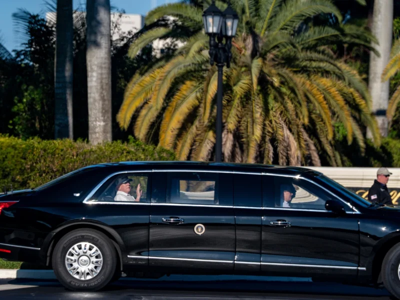 President Donald Trump waves as he departs Trump International Golf Club, Saturday, Dec. 27, 2025, in West Palm Beach, Fla. (AP Photo/Alex Brandon)