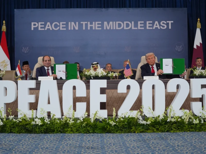 Trump, el-Sissi, Turkish President Recep Tayyip Erdogan and Qatari Emir Tamim bin Hamad Al Thani signed a document outlining a broad vision that Trump said would lay the groundwork for Gaza’s future.