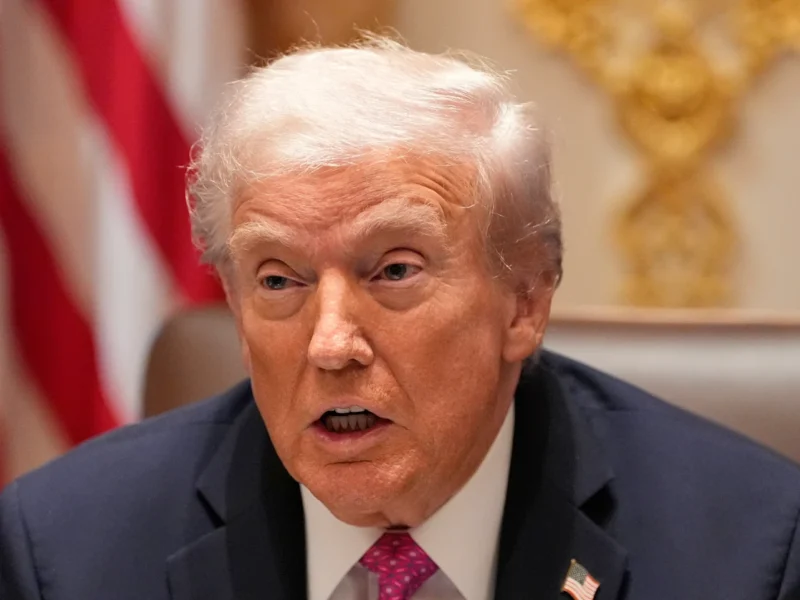 President Donald Trump speaks before a lunch with Ukraine's President Volodymyr Zelenskyy in the Cabinet Room of the White House, Friday, Oct. 17, 2025, in Washington. (AP Photo/Alex Brandon)