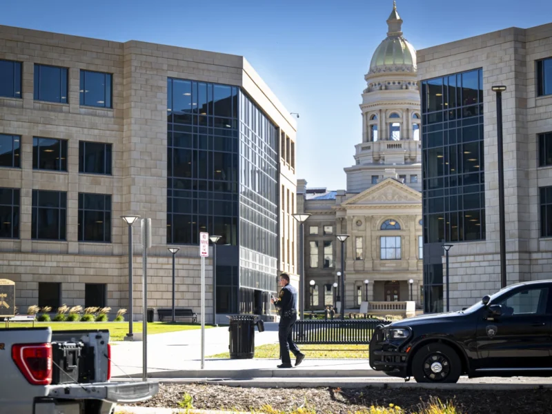 Wyoming Highway Patrol troopers have been stationed in the Capitol in the past and checked visitor bags in the days after the Jan. 6, 2021, riot at the U.S. Capitol. No security was visible in the building on Wednesday, however.